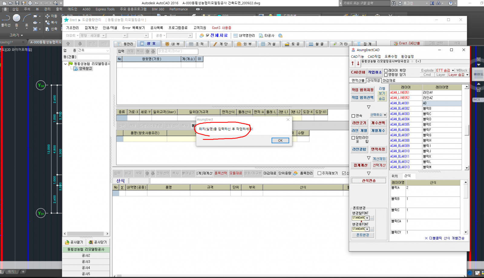 위치(실명)을 입력하신후 작업하세요! 라고 뜨는데