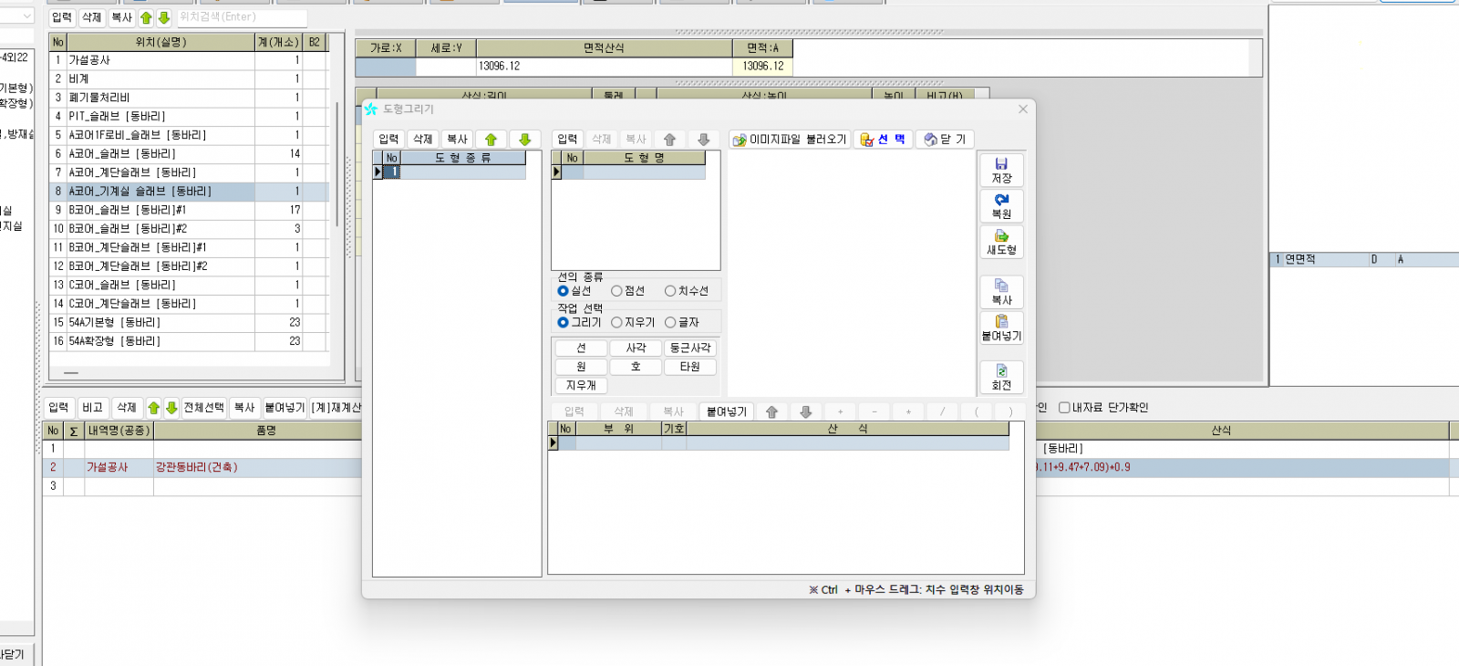 마감적산프로그램에서 그림도형이 사라졌습니다