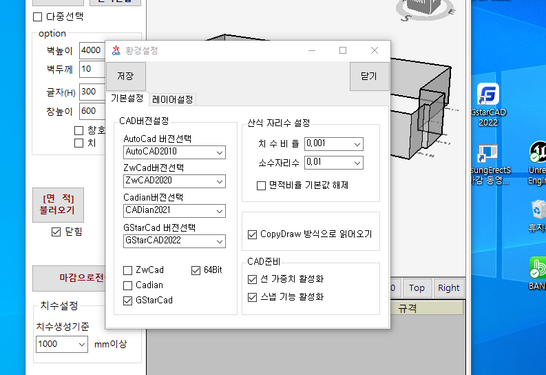 ERECTS 에서 3D산출에서 지스타CAD 2022 캐드불러오지 못한는부분 빠른 수정부탁드립니다.