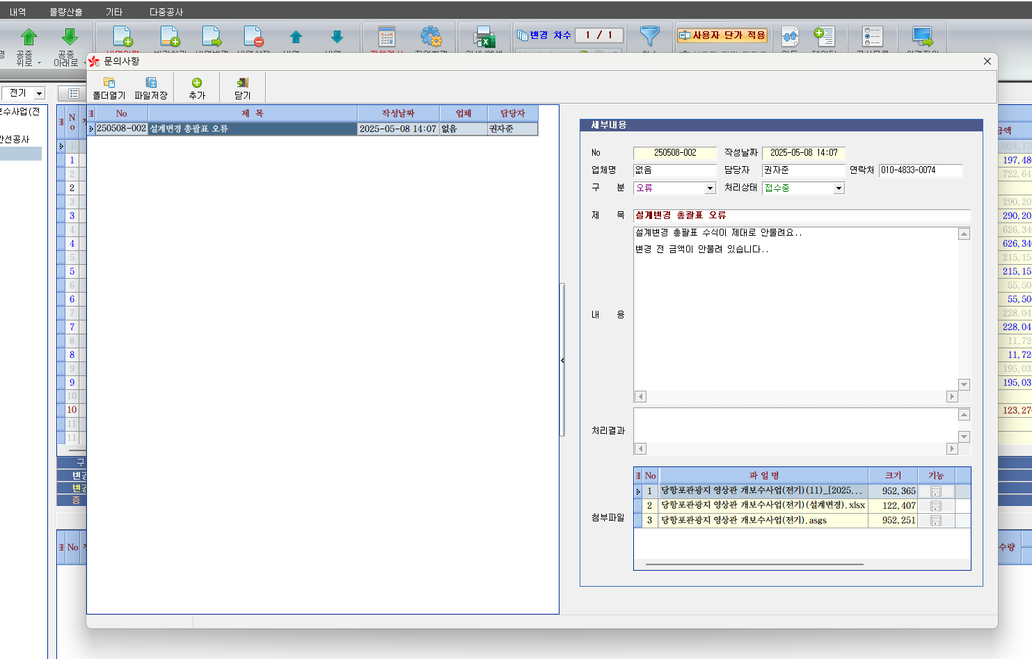 - 다음글[RE]: 설계변경 총괄표 엑셀 변환 오류 문의사항 있습니다. 25.05.12