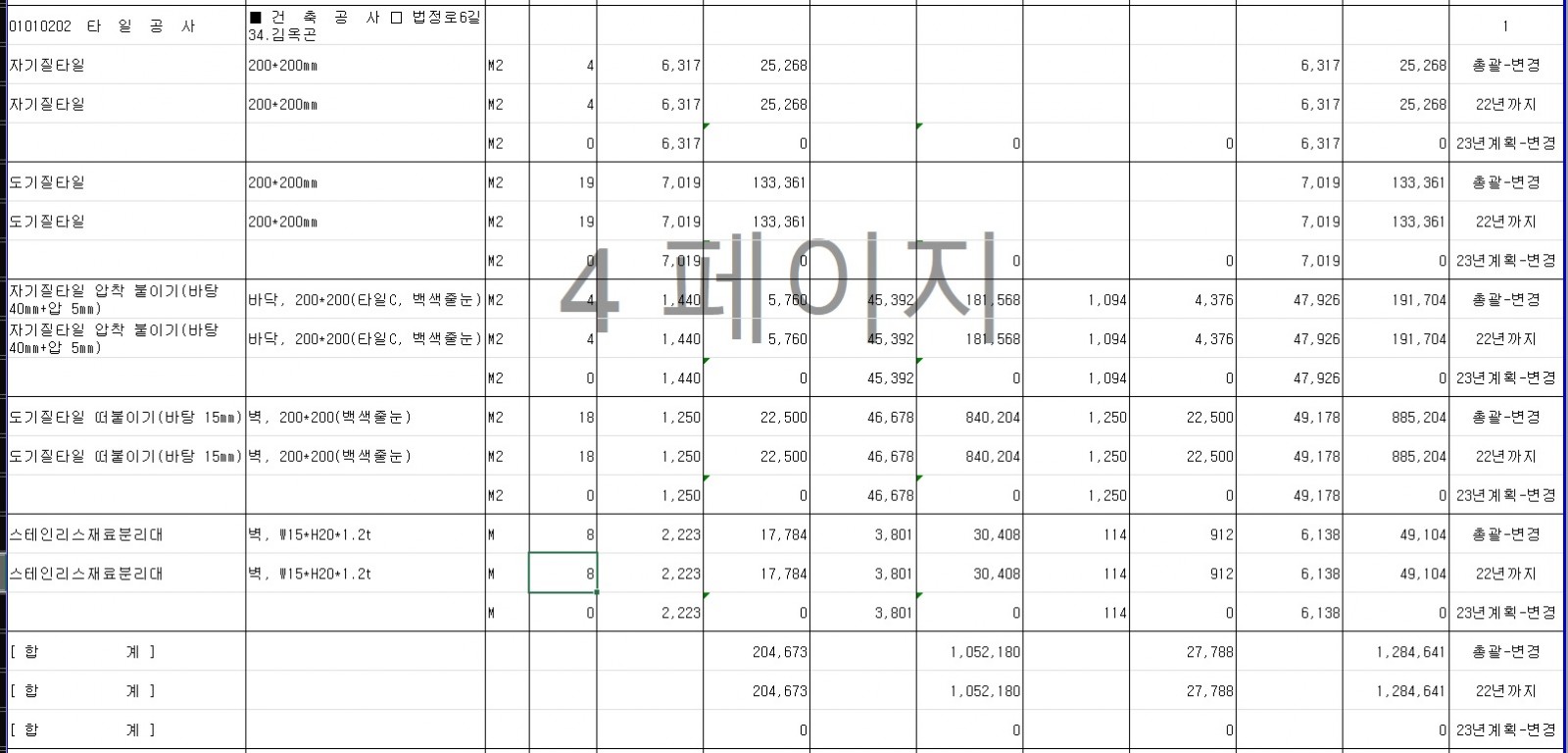 농어촌공사의 경우 차수공사건에 대하여 내역작성시 년도 별로 항목별로 1열을 추가하여 3열 기능 필요한데 이렇게 작성하는 방법이 있을가요
