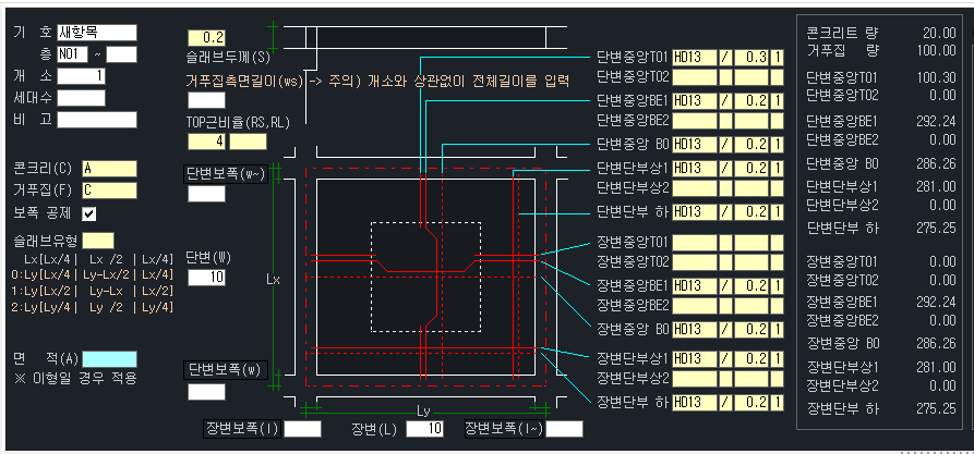 저번에 사진처럼된 슬라브 작업을 물었는데 1/4형 슬래브에서 탑근비율1 지정하여 하라고 했는데 잘못 알려준거 아닌가요?