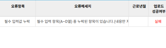 전자카드 근무관리시스템에 일괄수정으로 파일을 첨부하면 실패라고 뜹니다.