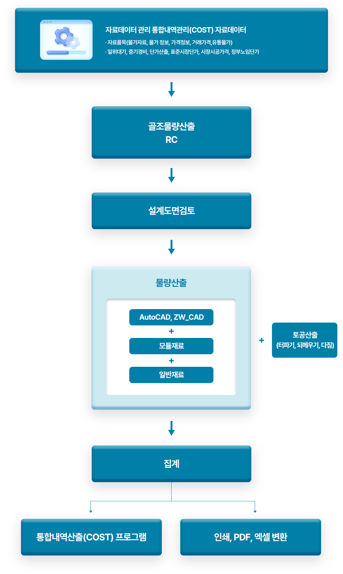 10) 통합내역산출(COST)프로그램으로 집계물량이 전송됨으로 (내역서 자동작성)