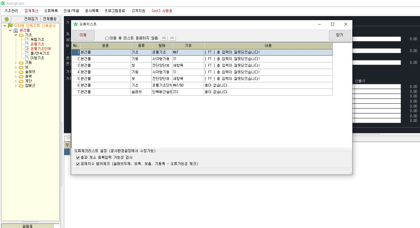 첨부파일에서처럼 층 입력이 되지 않았다고 오류리스트에 표시가 됩니다.